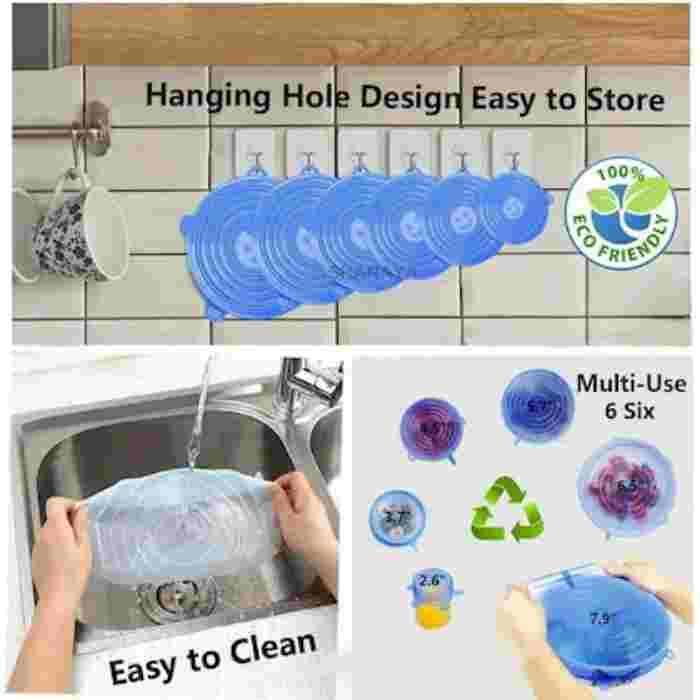 Keep your food fresh and your kitchen organized with this 6-piece silicone lid set, designed to stretch and seal tightly over bowls, jars, cans & more. Made from food-grade silicone, these reusable lids are eco-friendly, leak-proof & safe for the microwave, freezer, and dishwasher.